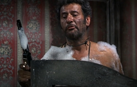 המכוער יורה בו מתוך המים ארבע פעמים עם האקדח שהחזיק שם, יוצא מחדר האמבטיה, יורה בו ומעיף אותו ביריית חיסול סופית ואומר: "כשאתה צריך לירות – תירה, אל תדבר". משפט קולנועי אדיר ומסר אדיר גם לחיים.
